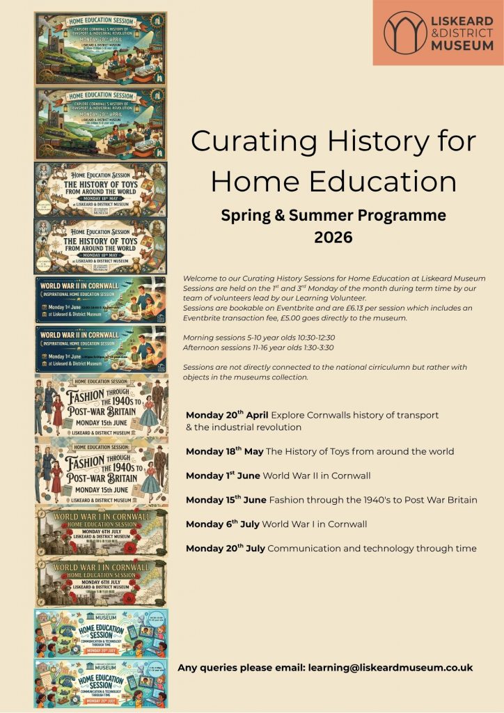 Should you have any questions please email: learning@liskeardmuseum.com