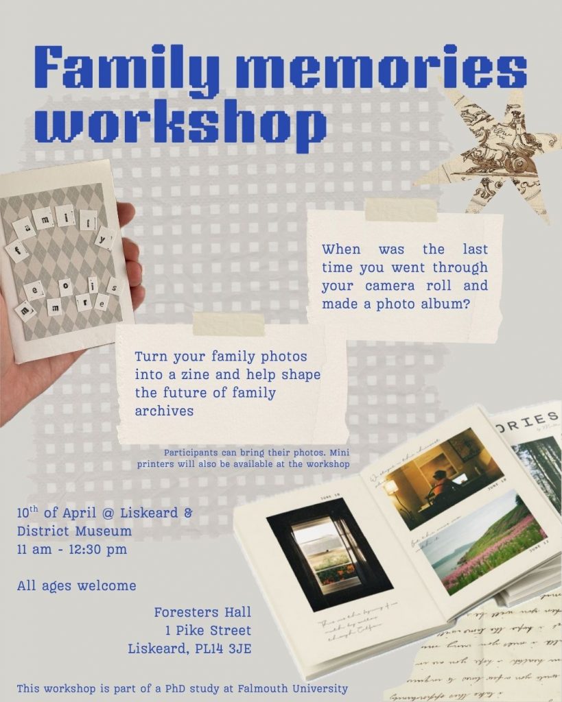 Friday 10th April 11:00am-12:30pm Family Memories Workshop. Join PHD student Lana for another photo inspired workshop.